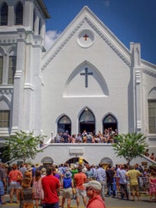 The Gothic Revival church building at 110 Calhoun Street was constructed in 1891-1892 to house the congregation known today as Emanuel African American Methodist Episcopal (AME), founded in 1818.[1] The historically African American church is the oldest Black congregation in the southeast and is associated with a number of Charleston’s most significant civil rights events and figures. [2] Often referred to as “Mother Emanuel,” the church’s colloquial name stems from the congregation’s relationship to its “daughter” church, Mount Zion AME, which formed in 1882 in response to a rapidly growing number of parishioners at Emanuel.[3]