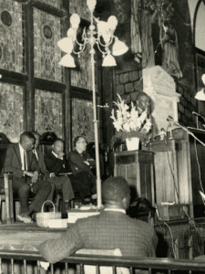 During the 20th century, Emanuel AME became a center of African American life in Charleston, serving as prominent space for corporate worship, social gatherings, and political assembly. The church hosted key civil rights leaders including, Booker T. Washington, W.E.B. Du Bois, Martin Luther King Jr., and Coretta Scott King, and served as an important site for organization during the Kress Sit-In of 1960, and the Hospital Strike of 1969.[10]