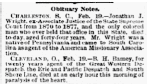 [4] R. H. Woody, “Jonathan Jasper Wright, Associate Justice of the Supreme Court of South Carolina, 1870 – 1877,” in The Journal of Negro History, Vol. 18 No. 2 (April 1933).