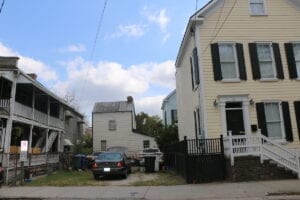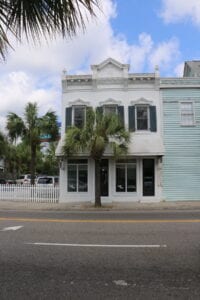 The two-story stuccoed masonry building at 84 Queen Street was built c. 1876 by German-born merchant William Ufferhardt replacing an earlier building lost in the great fire of 1861.[1] A Charleston single house in plan, a two-story piazza previously spanned the narrow space on the west side of the building. Notably, from 1879 until 1885, the building’s first floor served as the law office of Justice Jonathan Jasper Wright, the country’s first African American State Supreme Court Justice.[2]