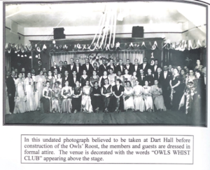 In the Club’s early years, members hosted regular meetings at private residences and often rented spaces for larger gatherings. The inaugural meeting of the Owls’ Whist Club was held at 195 Smith Street, home of founding member Frank W. Dawson. The c. 1835 Charleston Single House underwent a major exterior rehabilitation from 2019 to 2021, earning a Carolopolis Award from the Preservation Society of Charleston.