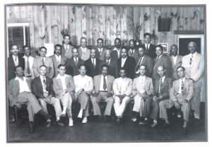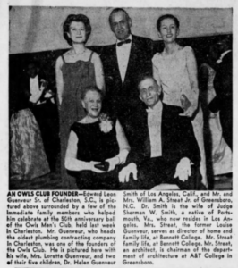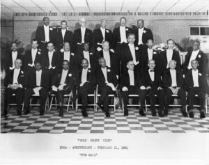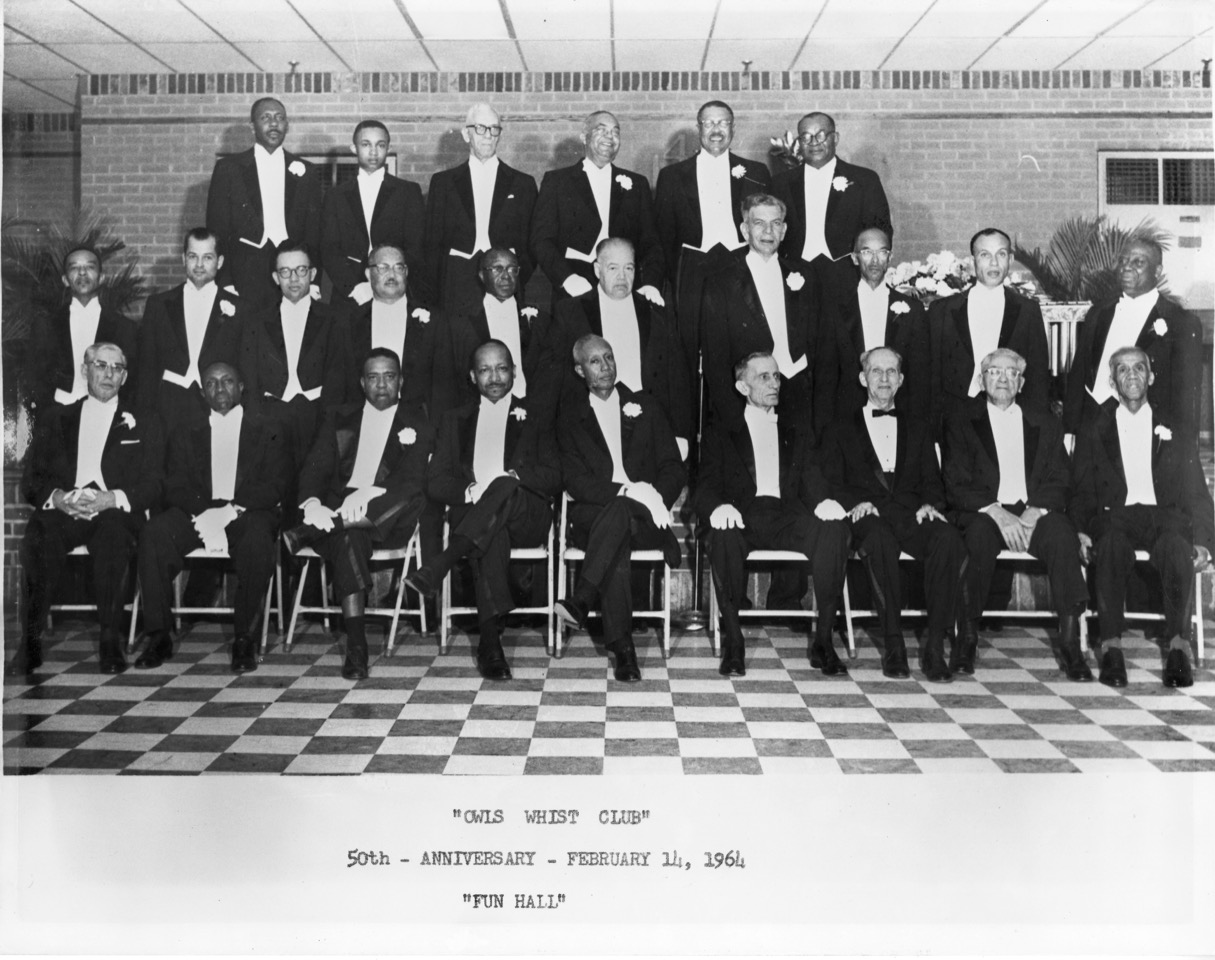The original sixteen members of the Owls’ Whist Club were Frank W. Dawson, W. Allison Sanford, James A. Stender, Frank Fields, Harold Bryant, Dr. William H. Felder, J. Paul Guenveur, Walter Jefferson, Robert O. Harleston, A. Clifton Hoffman, John H. Schroeder, W. Hubert Drayton, E. Leon Guenveur, Granville W. Hurlong, Sr., Charles F. Pequette, Jr., and Edward L. Schroder.[2] Membership gradually expanded to include additional active members, a roster of retired members, and even an Auxiliary Club of Owls’ Wives.[3]